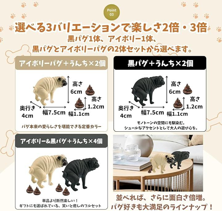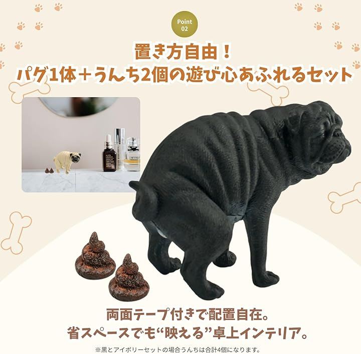 パグ 雑貨のセット内容はパグの置物1体とうんち2個。