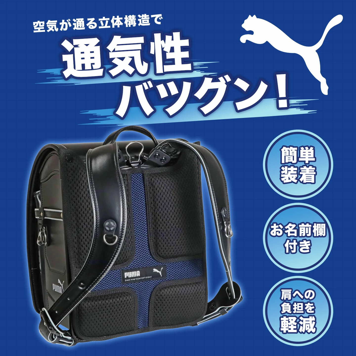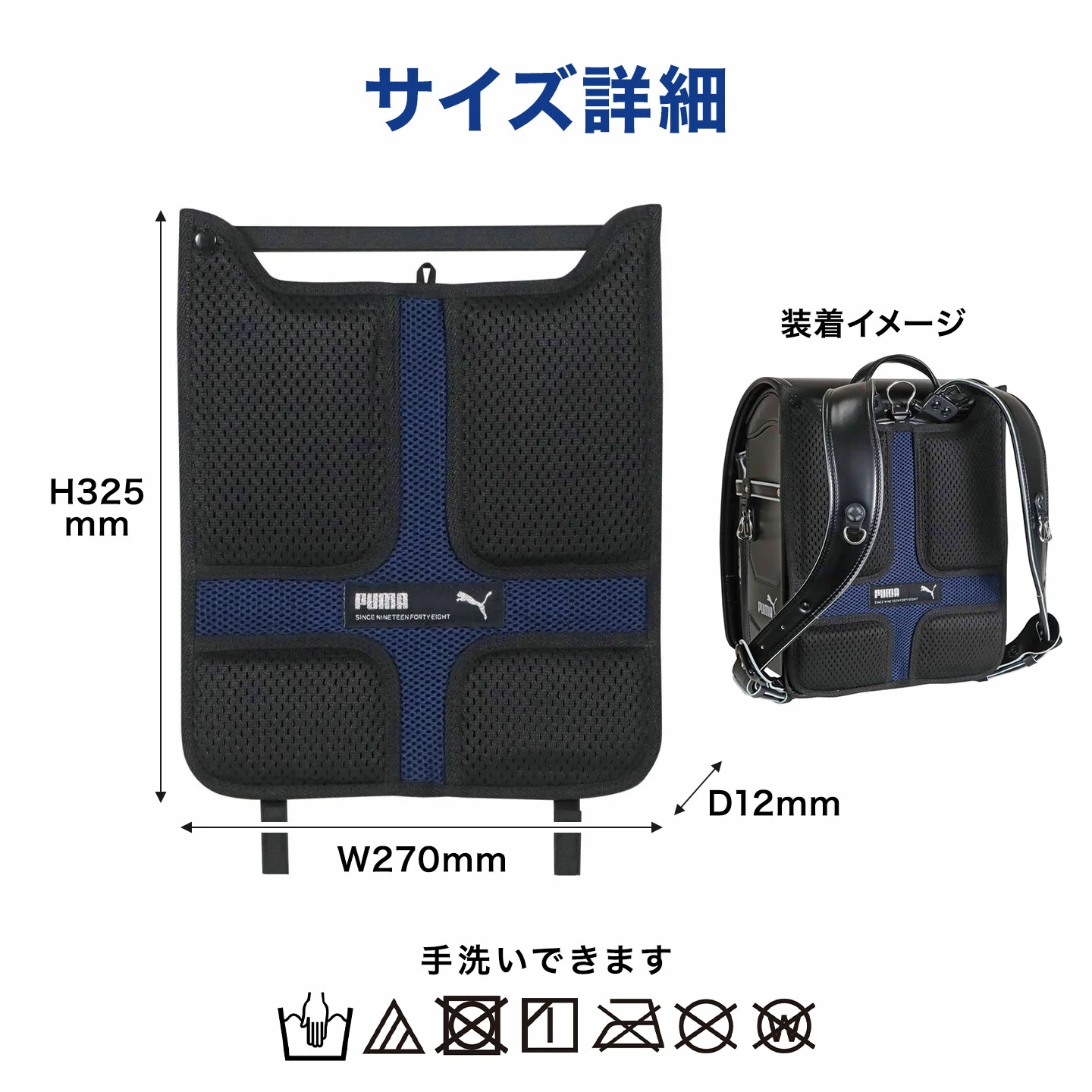 ■関連キーワード小学 1年 2年 3年 4年 5年 6年 一年 二年 三年 四年 五年 六年 生 小学校 小学生 学校 入園 入学 準備 入園準備 入学準備 通園 通学 子ども 子供 こども キッズ ジュニア 息子 孫 男性 男子 男の子 ボーイズ メンズ boy バースデー 誕生日 プレゼント プチ ミニ ギフト お祝い クリスマス クリスマスプレゼント バレンタイン チョコ以外 シンプル かっこいい カッコいい カッコイイ ランドセル用 背中 メッシュ パッド PUMA プーマ 洗える 手洗い 快適 ランドセルパッド 汗取りパッド 背当て パット クッション 通気性抜群 肩 腰 負担 軽減 蒸れない 疲れにくい 蒸れ防止 汗 暑さ対策 熱中症対策 登下校 黒 ブラック ネイビー ブランド ランドセル用背当てパッド 背中メッシュパッド 立体メッシュ 取り付け簡単 通気性 背中 カバー 汗ムレ 軽減 便利グッズ 児童 低学年 中学年 高学年