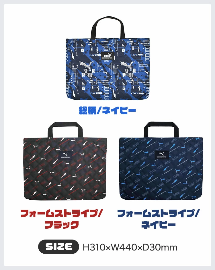 【レッスンバッグ】軽くて丈夫で持ちやすい!クールなPUMAデザインのレッスンバッグ。学校のサブバッグや習いごと、塾など幅広く活躍できます。同じ柄のアイテムと揃えても◎ 新入学のお祝いにもオススメです!