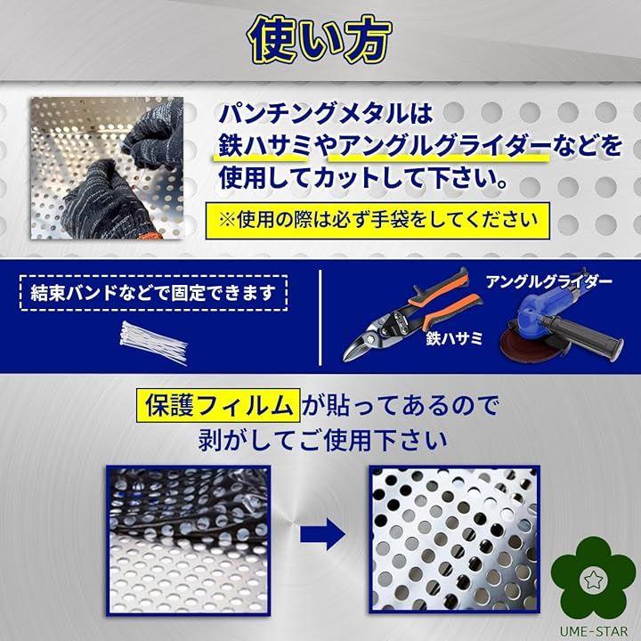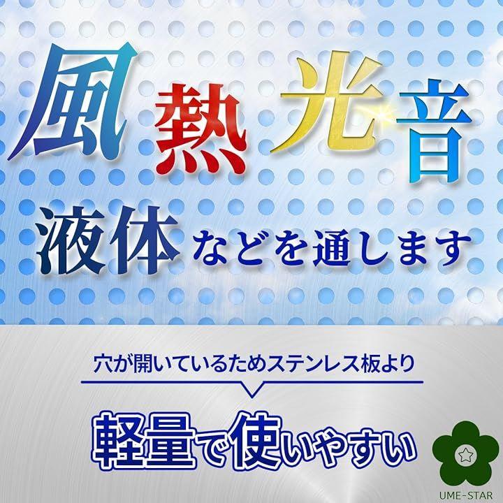 穴が開いていることで、ステンレス板よりは軽く、曲げたり、カットなどの加工もやりやすいです。