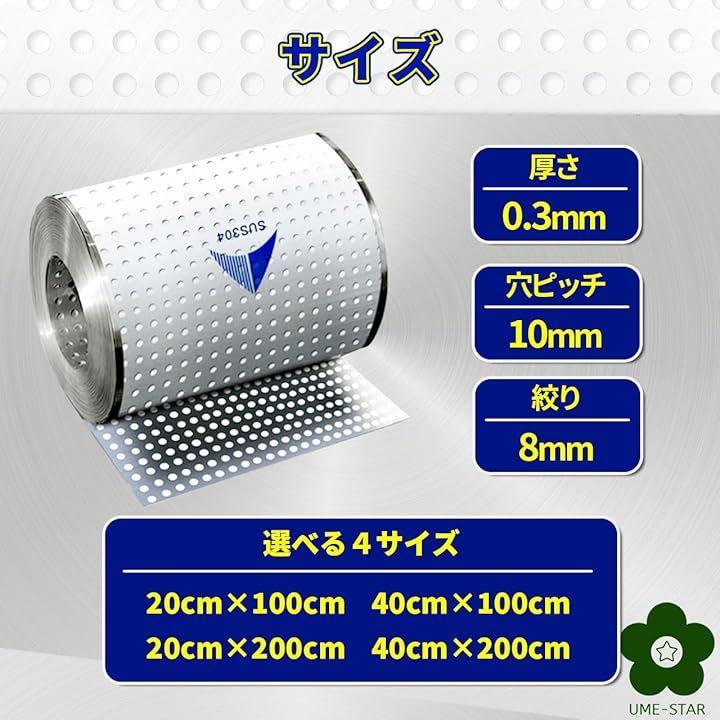[サイズ] 厚さ:0.3mm 幅:40cm 長さ:200cm 穴:8mm ピッチ:10mm (幅 20cm 長さ 100cm)、 (幅 20cm 長さ 200cm)、(幅 40cm 長さ 100cm)、 (幅 40cm 長さ 200cm)からお選びいただけます。