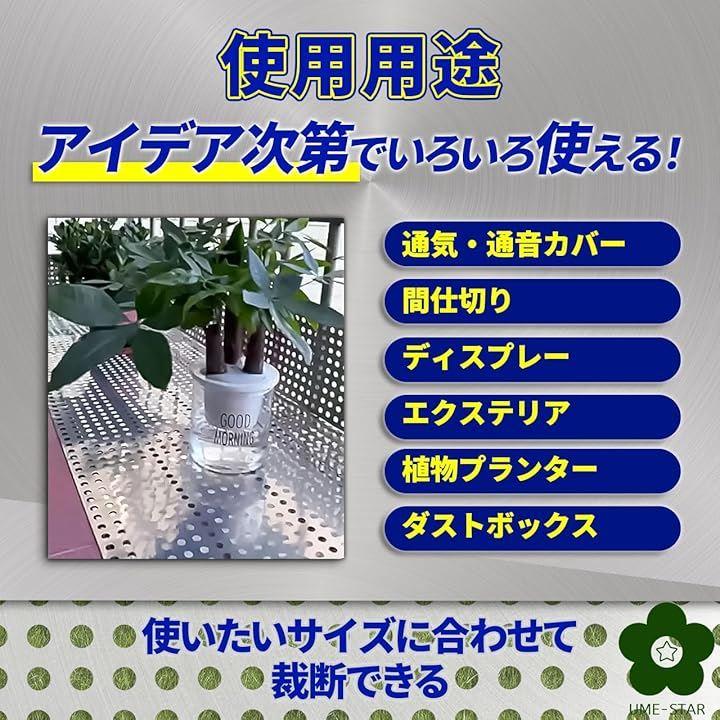 ベランダや窓などの高所からの植木鉢、ビンなどの落下を防ぐステンレス製のパンチングメタルです。