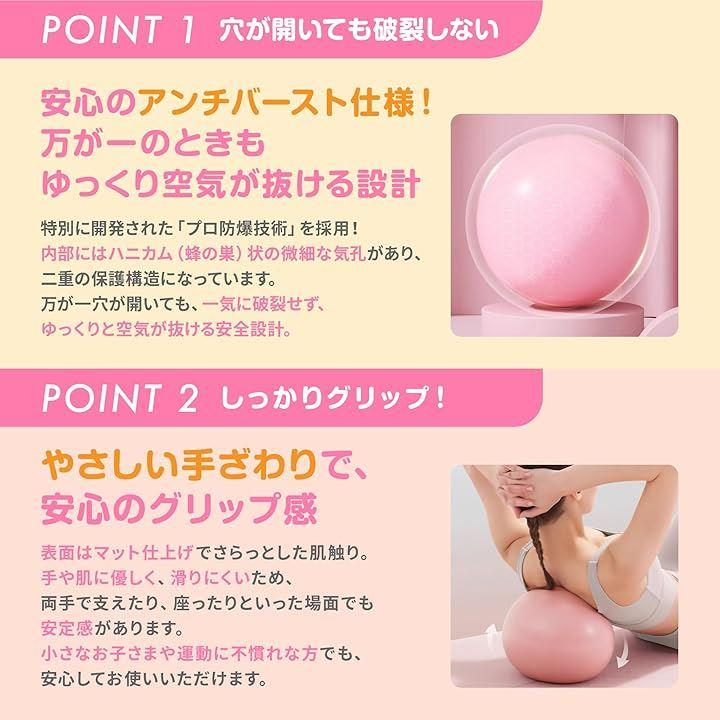 万が一穴が開いてもゆっくり空気が抜けるアンチバースト仕様、表面は滑りにくく、軽量設計で扱いやすいのが特長です。