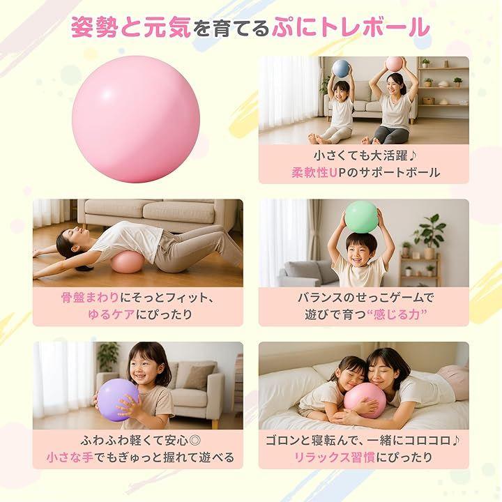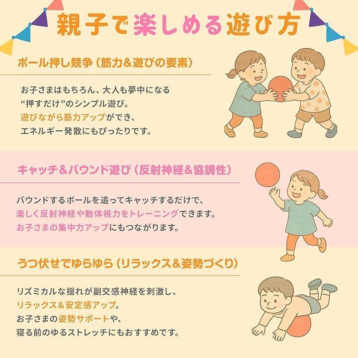 「遊びながら体幹とバランス感覚UP。」 ボールに乗ったり、転がしたりする遊びを通して、自然に体幹が鍛えられ、バランス感覚が養われます。