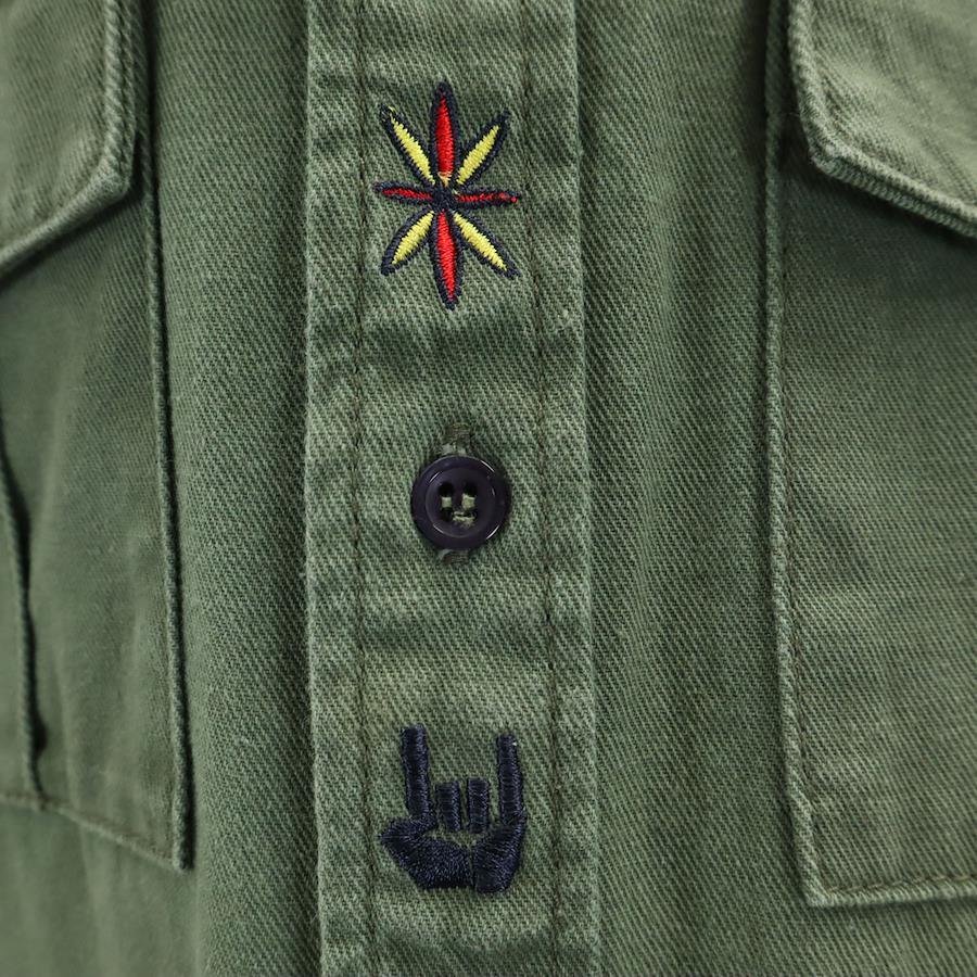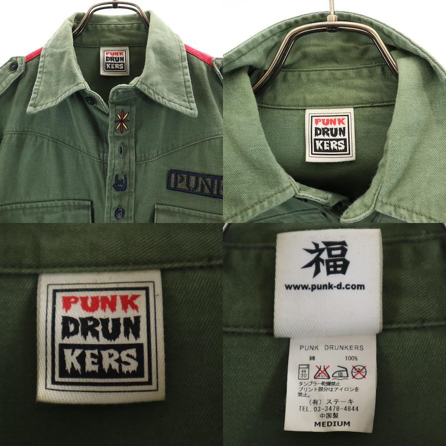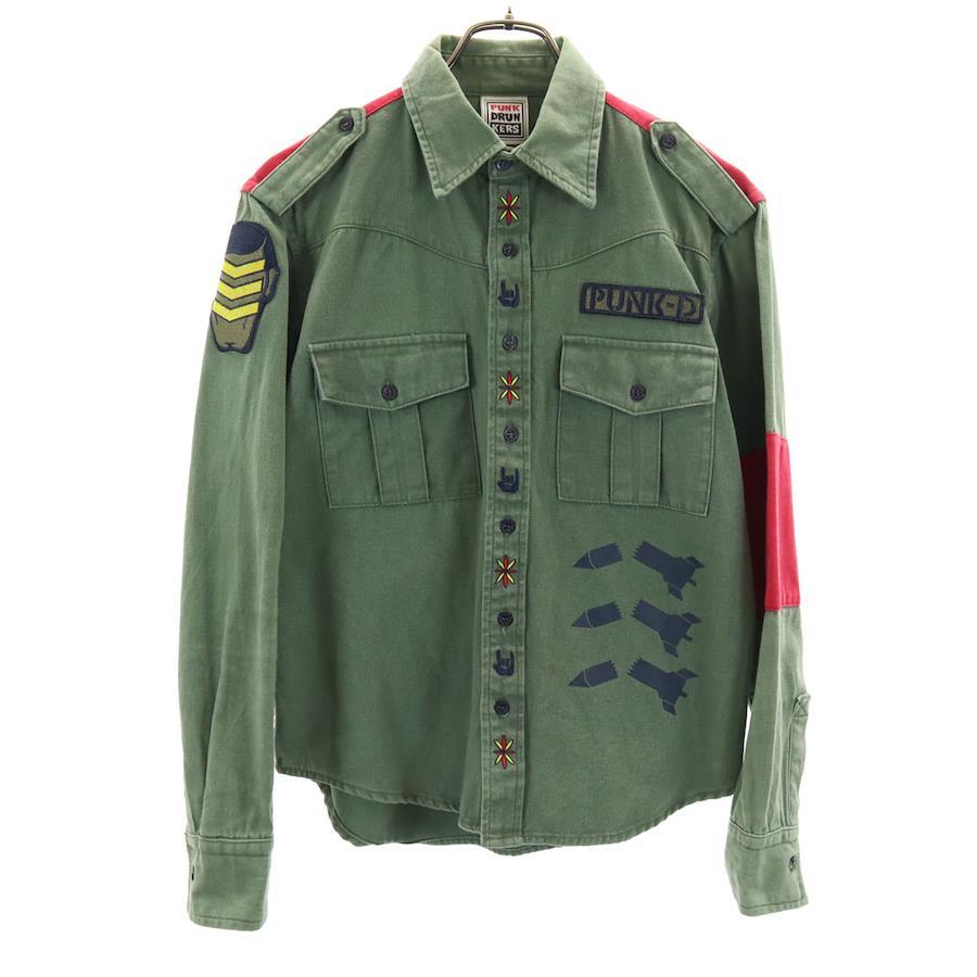 パンクドランカーズ 長袖 ミリタリーシャツ M カーキ メンズ