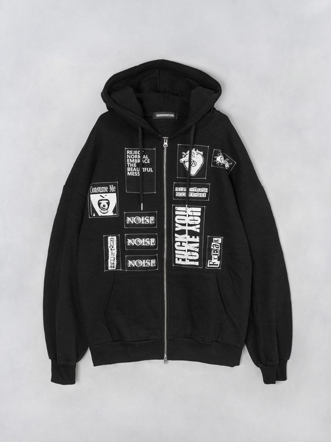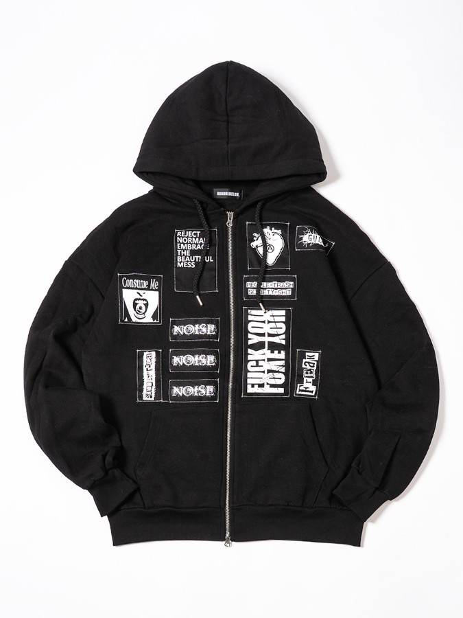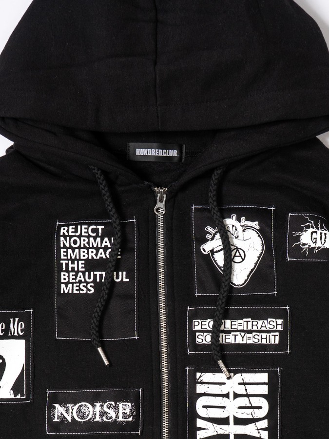 男女問わず着用可能な「HUNDREDCLUB」のフーディー。オリジナルパッチを施したカスタムデザイン。着こなしの幅が広がるWジップもポイント☆ロング丈&裏起毛で暖かく肌触りも◎
