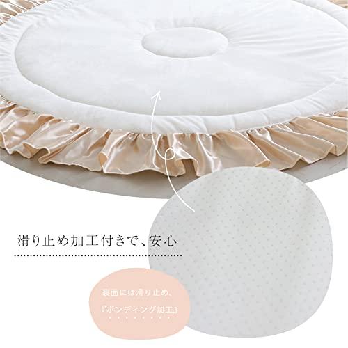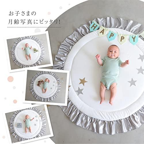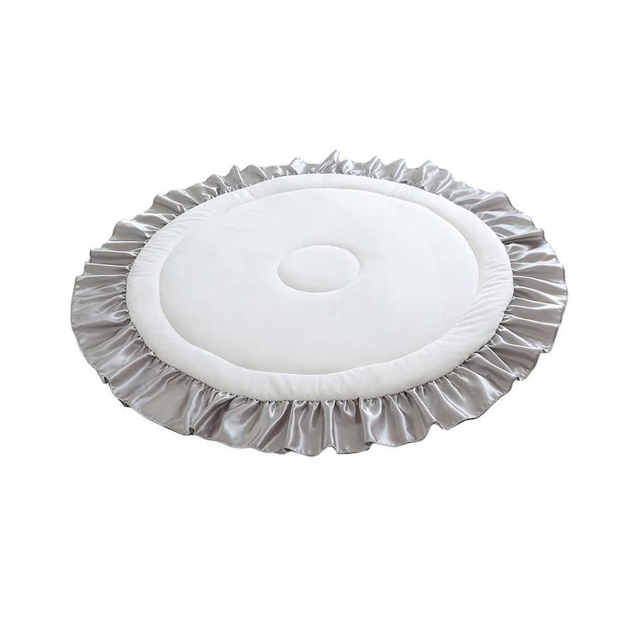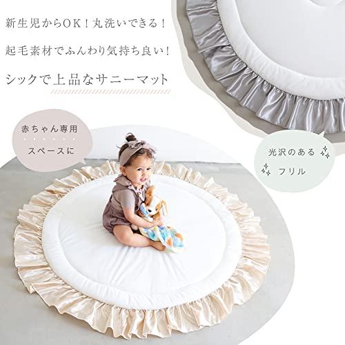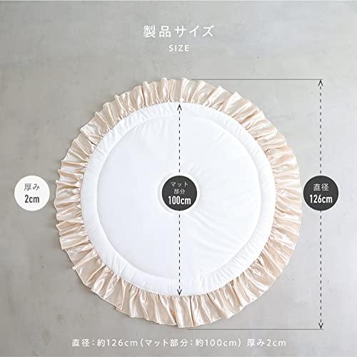直径:約126cm(マット部分:約100cm)厚み2cm 大きなフリルとふわっふわのさわり心地のサニーマット、ベビーからキッズまで長く使えて、汚れてもご家庭でお洗濯できます。 中綿が2層式なのでふんわりなのにしっかり!裏面はすべり止め付きなのでフローリングでも快適。(検針済み)ギフトにもピッタリな花束型のパッケージを採用。 [注意事項]長時間の就寝にはご使用しないでください。この商品はマットのみの販売になります、小物は含まれておりません。[商品カラーにつきまして]商品のカラーは生産時期・ロットにより多少の差異が出ることがございます。また、お使いの端末やモニター(及びブラウザ)によって異なって見える場合がございます。ご了承くださいませ。 マット部分 表地:ポリエステル100% 中綿・中芯・裏地:ポリエステル100%(裏地:滑り止め付き) フリル部分 ポリエステル100%