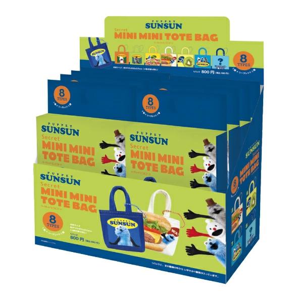 パペットスンスンのシークレットミニミニトートバッグのコンプリートBOXセットです。小物入れにぴったりなサイズ感が◎ボールチェーン付きなのでキーホルダーとしても使えます!スンスンのぬいぐるみに持たせてぬい活にもOK☆シークレット入りなので開けるまでドキドキ&ワクワクが楽しめます♪スンスン好きの方はぜひポーチやバッグなどに付けてスン活しましょう☆彡