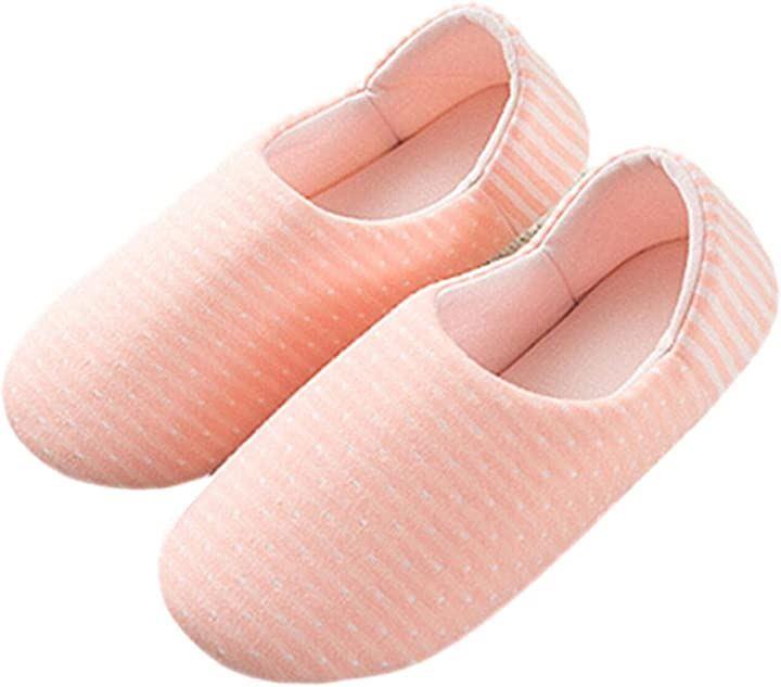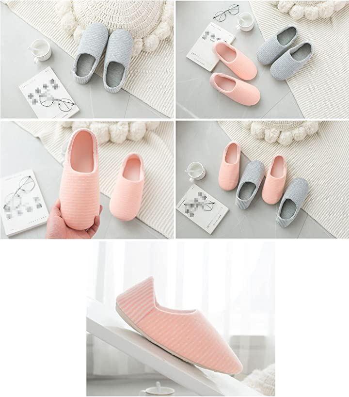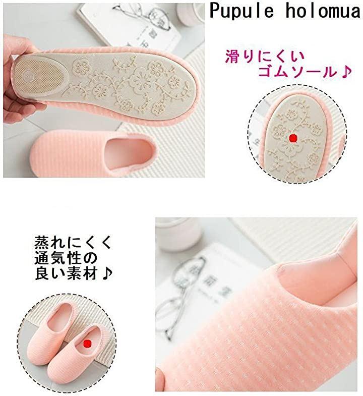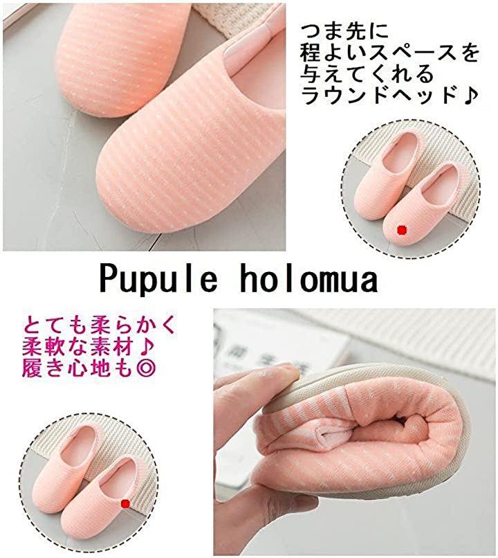 ・柔らか素材のスリッポンタイプのルームシューズ・ドット柄xボーダーコラボデザインがとってもキュート・
