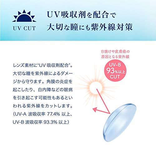 ・販売名:ワンデーリフレアUVモイスチャー38 ・使用期限:1日使い捨て ・入り数:1箱30枚入り ・度数:-0.50~-6.00(0.25step),-6.50~10.00(0.50step) ・BC:8.70mm ・DIA:14.0mm ・含水率:38.6% ・製造国:マレーシア ・製造販売元:フロムアイズ株式会社 ・医療機器承認番号:30100BZX00038000 「UV吸収剤を配合で大切な瞳にも紫外線対策」:レンズ素材に「UV吸収剤配合」。大切な瞳を紫外線によるダメージから守ります。角膜の炎症を起こしたり、白内障などの眼病を引き起こす可能性もあるという紫外線をカットします。(UV-A波吸収率77.4%以上、UV-B波吸収率93.3%以上) 「MPCポリマーの潤いベールで快適なつけ心地とうるおい感」:ヒアルロン酸の約2倍の保水力を持つ「MPCポリマー」は化粧品や医療分野において広く活用される親水性・保水性に優れた成分。MPCポリマーが潤いのベールとなってレンズを包み込み、長時間でも快適なつけ心地を保ちます。 「低含水で水分蒸発が少なく程よくうるおいが持続」:瞳の乾きの原因の一つは涙が蒸発してしまうこと。レンズ自体に水分を多く必要としない「低含水レンズ(含水率38.6%)」だから、涙を無駄に吸収せず、水分の蒸発量が少ないので、乾燥しにくく、程よく潤いを持続します。 「ポスト投函で受け取り楽々!ポスト投函便対応のスリムBOX」:パッケージの厚みを1.1cmの薄型にすることで、ポスト投函便での配送が可能になりました。今まで面倒だった、受け取りの為の待ち時間や、再配達依頼の必要なしの、ポスト投函で受け取りを楽々に。