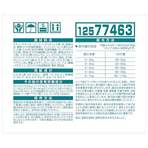 猫の11歳はエイジングの兆候が徐々に現れ、体格、毛並み、また日々の行動がゆったりしてくるなどの変化が起こる時期。「腎臓・尿路」、「お腹」、「脳」を中心に11歳からの猫に必要な健康要素をまとめてケアし、健康寿命をサポート。●健康な腎臓と尿路のケアーリンの含有量を適切に調整し、ビタミンE、Cなどの抗酸化成分が腎臓の健康をケア。ミネラルバランスの調整によるpHコントロールで尿路の健康ケア。●お腹の健康ケアー消化に優れた原材料を使用。プレバイオティクスやグルタミンを配合。 ●脳の健康ケアーDHA、コリン、ビタミンなどを適切に配合。いつまでも賢い頭脳で機敏な毎日を。原材料:チキン、チキンミール、コーングルテン、小麦、米、脱脂大豆、鶏脂(オメガ6脂肪酸源)、フィッシュミール、小麦たんぱく、大麦、たんぱく加水分解物、可溶性繊維(プレバイオティクス源)、魚油(オメガ3脂肪酸(DHA)源)、酵母(βグルカン源)、ミネラル類(カルシウム、リン、カリウム、ナトリウム、クロライド、マグネシウム、鉄、銅、マンガン、亜鉛、ヨウ素、セレン)、ビタミン類(A、D、E、K、B1、B2、パントテン酸、ナイアシン、B6、葉酸、ビオチン、B12、コリン、C)、アミノ酸類(メチオニン、タウリン)保証成分:たんぱく質:38%以上、脂質:15%以上、粗繊維:3%以下、灰分8.5%以下、水分12%以下原産国:オーストラリア●製品リニューアルに伴い、パッケージサイズ・分封サイズ&個数が表記と異なる製品が届く可能性がございます。詳細はサブ画像をご確認ください。