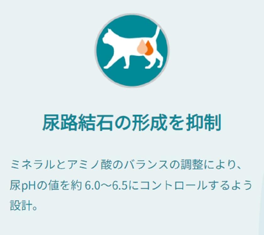 ●尿路の健康維持をサポート。 ●ミネラルバランスを調整し、尿路結石の形成を抑制。 ●オメガ3脂肪酸配合で尿路の健康ケア。適切なリンと抗酸化成分の配合で腎臓の健康ケア。3つの栄養素の特別な配合で健康を保ち、体の内と外の両面から免疫力を維持します。原材料:チキン、チキンミール、コーングルテン、小麦、米、脱脂大豆、鶏脂(オメガ6脂肪酸源)、フィッシュミール、大麦、とうもろこし、小麦たんぱく、たんぱく加水分解物、可溶性繊維、魚油(オメガ3脂肪酸源)、酵母(βグルカン源)、ミネラル類(カルシウム、リン、カリウム、ナトリウム、クロライド、マグネシウム、鉄、銅、マンガン、亜鉛、ヨウ素、セレン)、ビタミン類(A、D、E、K、B1、B2、パントテン酸、ナイアシン、B6、葉酸、ビオチン、B12、コリン、C)、アミノ酸類(メチオニン、タウリン)保証成分:たんぱく質:34%以上、脂質:14%以上、粗繊維:3%以下、灰分8.5%以下、水分12%以下