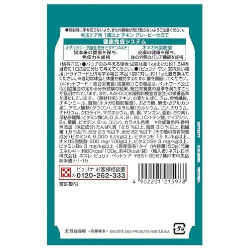 オメガ6脂肪酸とビタミンB群が健康な皮膚と美しい被毛を維持。天然の食物繊維で毛玉ケア。「健康免疫システム」で猫本来の健康を保ち、免疫力を維持。総合栄養食パウチで毛玉ケア原材料:チキン、小麦たんぱく、ラム、食物繊維、チキンミール、鶏脂(オメガ6脂肪酸源)、ぶどう糖、酵母(βグルカン源)、アミノ酸類(タウリン)、ミネラル類(カルシウム、リン、カリウム、ナトリウム、クロライド、マグネシウム、鉄、銅、マンガン、亜鉛、ヨウ素)、増粘多糖類、ビタミン類(A、D、E、K、B1、B2、パントテン酸、ナイアシン、B6、葉酸、ビオチン、B12、コリン)、カラメル色素保証成分:たんぱく質:12.5%以上、脂質:3%以上、粗繊維:1.5%以下、灰分2.5%以下、水分82%以下