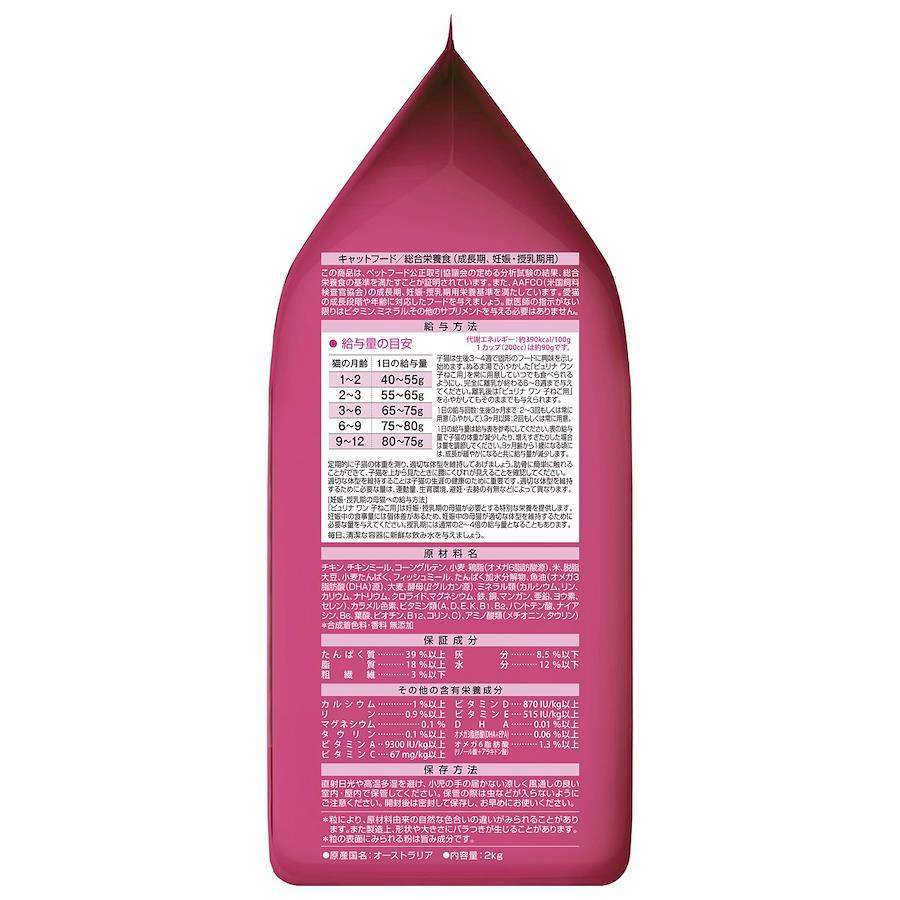 高たんぱく設計で健康な体の発達をサポート。DHAとビタミンAが脳と視覚のすこやかな発達をサポート。優れた消化吸収性でお腹の健康ケア。3つの栄養素の特別な配合で健康を保ち、体の内と外の両面から免疫力を維持します。原材料:チキン、チキンミール、コーングルテン、小麦、鶏脂(オメガ6脂肪酸源)、米、脱脂大豆、小麦たんぱく、フィッシュミール、たんぱく加水分解物、魚油(オメガ3脂肪酸(DHA)源)、大麦、酵母(βグルカン源)、ミネラル類(カルシウム、リン、カリウム、ナトリウム、クロライド、マグネシウム、鉄、銅、マンガン、亜鉛、ヨウ素、セレン)、カラメル色素、ビタミン類(A、D、E、K、B1、B2、パントテン酸、ナイアシン、B6、葉酸、ビオチン、B12、コリン、C)、アミノ酸類(メチオニン、タウリン)保証成分:たんぱく質:39%以上、脂質:18%以上、粗繊維:3%以下、灰分8.5%以下、水分12%以下