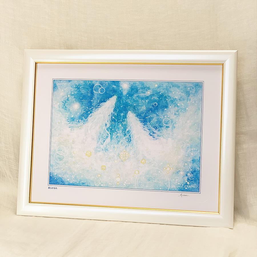 前面は、軽量安全なアクリルガラスを使用。額装のHYMジクレーは、UV処理を行っております。