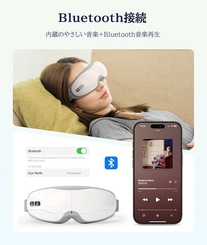 ワンタッチで温度ON/OFF可能。心地よい音楽3曲+Bluetooth接続で自由自在。お気に入りの音楽とシンクロする目元ケアタイム。