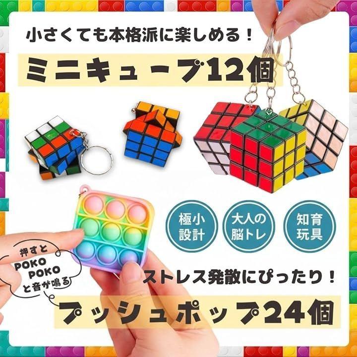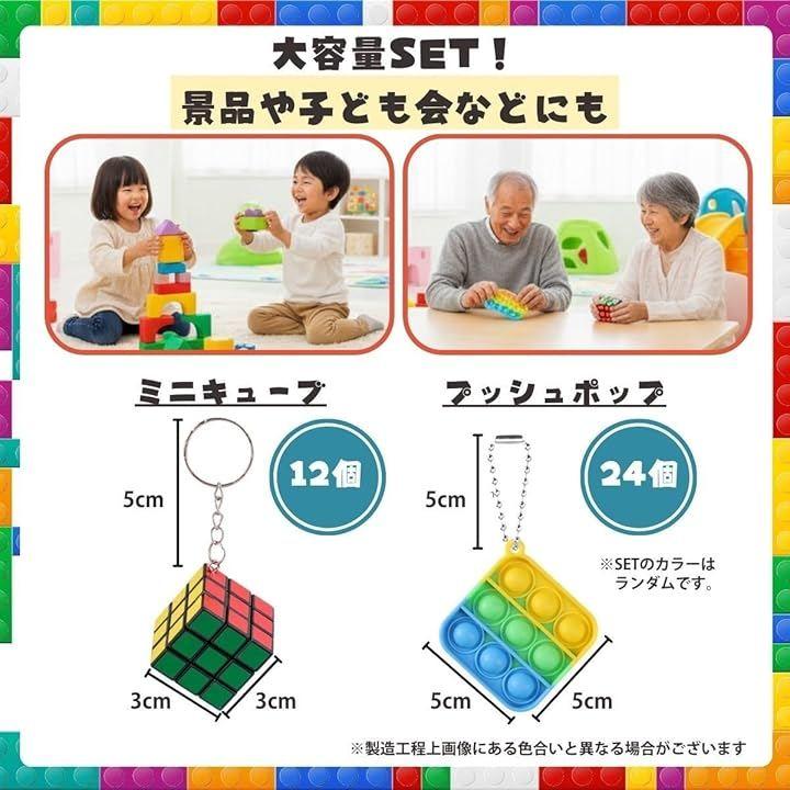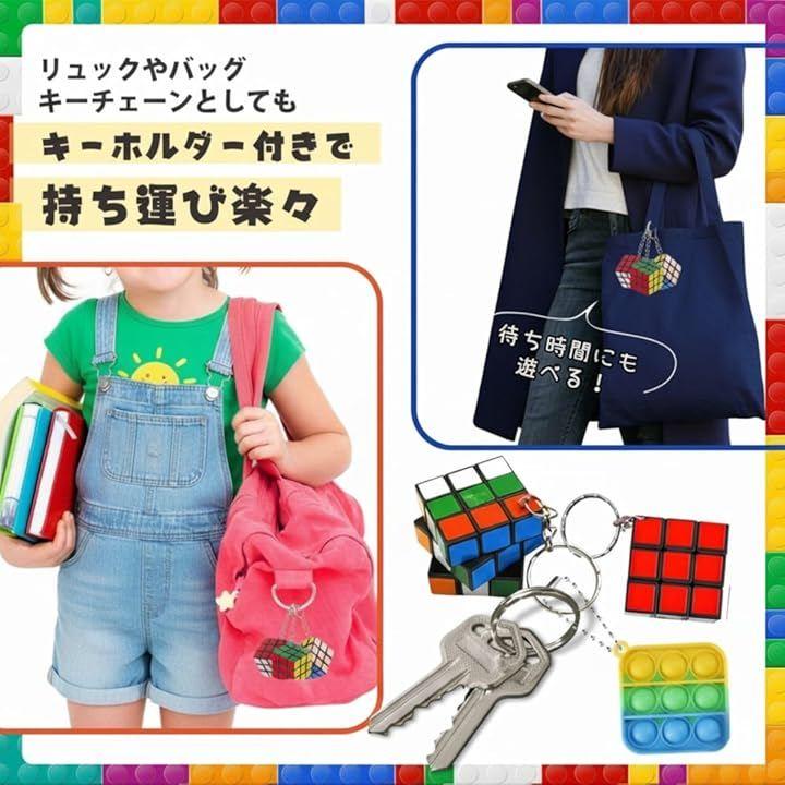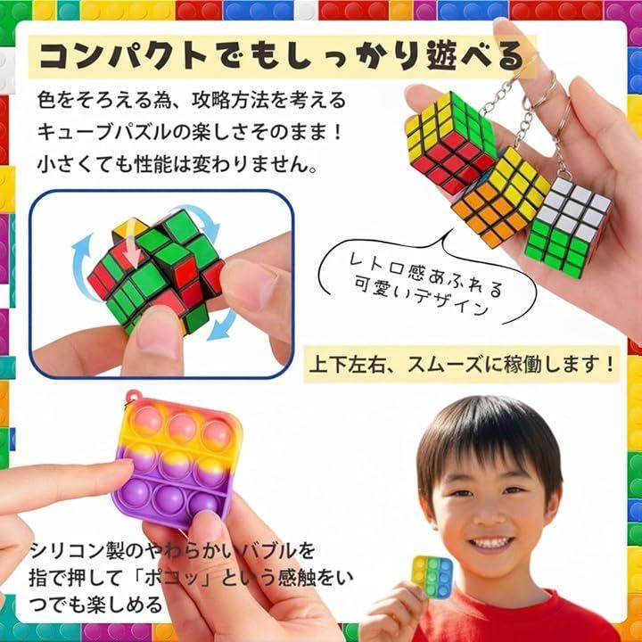 「セット内容」ミニキューブx12個、バブルキーホルダーx24個「サイズ」ミニキューブ:約3cmx3cm、バブルキーホルダー:約5cmx5cm*対象年齢6歳以上
