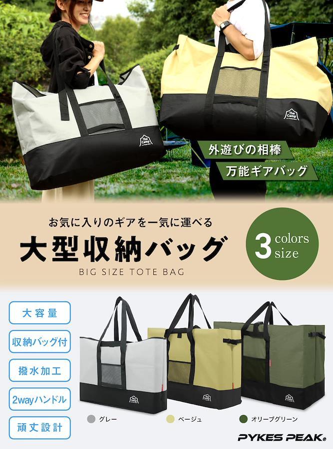 登録情報クロージャータイプ ファスナー 【ギアもガンガン詰め込める!キャンプで活躍の大型収納バッグ】頑丈で大容量なだけでなく、ギアの運搬をよりスムーズにするディティールを備えた高い機能性トートバッグです。テントや寝袋などの大きなギアも入るので、お気に入りのギアをたっぷりと持って行くことができ、あなたのアウトドアライフをより充実させます。収納袋付きなので、使用後はコンパクトに折りたたんで収納することができます。?【インナーポケットとしても使える収納袋付き / メッシュポケット / カラビナフック】収納袋付きで使わない時はコンパクトに折りたたんで収納できます。収納袋はファスナー付きで小物がごちゃごちゃにならずにスッキリと収納することができます。外側には、メッシュポケットがあるので、グローブなどのすぐに取り出したいものを入れて置くのに便利です。3つのカラビナ用フック付きで、小物をひっかけることができます。※カラビナは付属しません。?【肩掛け&手持ちの2WAYハンドル / バックル付き】肩掛けだけではなく、手持ちとしても使えるため、シーンに応じて使い分けることができます。肩掛け時に握れるハンドルが横に付いているので重い荷物の持ち運びの負担を緩和します。上部に1つ、両サイドに1つずつの計3つのバックル付きで、荷物をしっかりと固定することで大容量の荷物もよりスムーズに運搬できます。?【底部までぐるっとハンドルが一周 / 内側は撥水素材を採用】たくさんの荷物を入れるL、XLサイズは、ハンドルが底部まであり頑丈な設計になっています。内側はポリエチレン加工を施しているため、撥水効果があり耐久性もあります。濡れたキャンプギアを持ち運ぶのにも便利です。?【仕様 / セット内容 / メーカー保証】【仕様】本体サイズ:(約)幅65×奥行23×高さ50cm、収納サイズ:(約)幅37×奥行5.5×高さ26cm、重量:520g、容量:75L、材質:本体・収納袋:ポリエステル600デニール(内面:ポリエチレン加工)【セット内容】本体(収納袋付属)、取扱説明書【メーカー保証付き】PYKES PEAK製品の販売元は日本です。カスタマー対応も日本人スタッフが日本語で丁寧に対応いたします。初期不良や故障などの場合は、公式ライン「@pykespeak」もしくは、メール「[email protected]」までご気軽にご連絡ください。製品保証を含めご対応させ