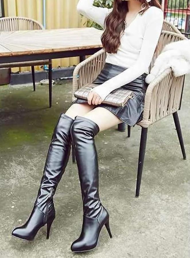 飽きのこないシンプルなデザインで、美脚を強調するニーハイブーツ。