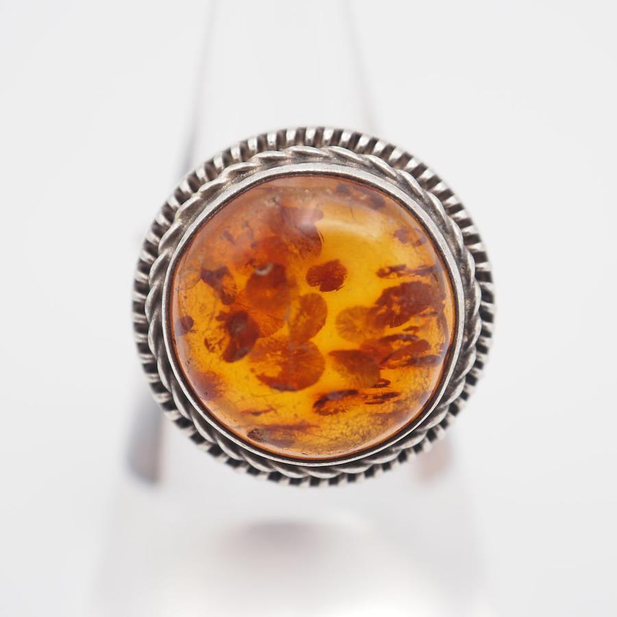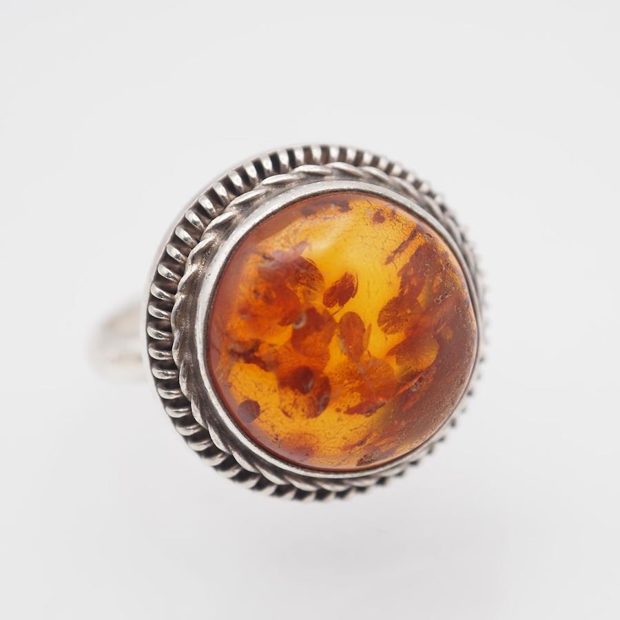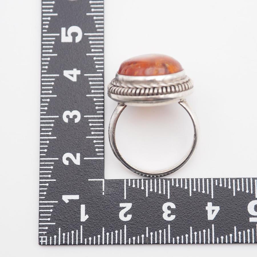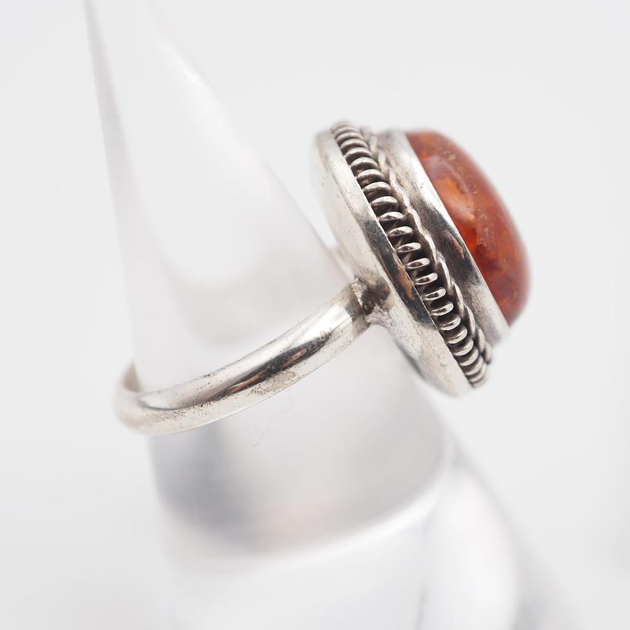 Q939 Amber Ring, Silver, Vintage Design, Size 11