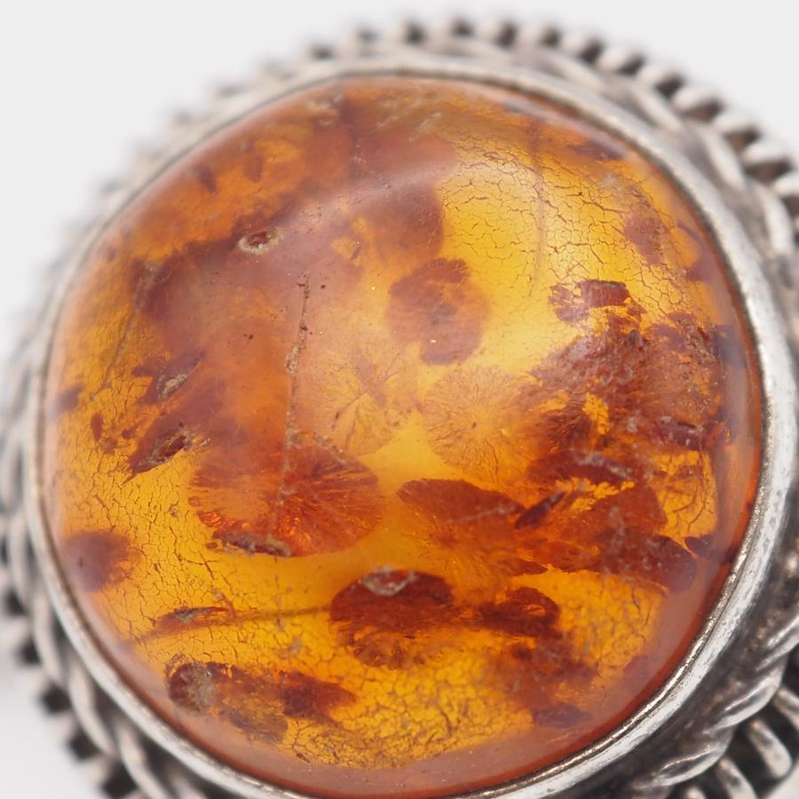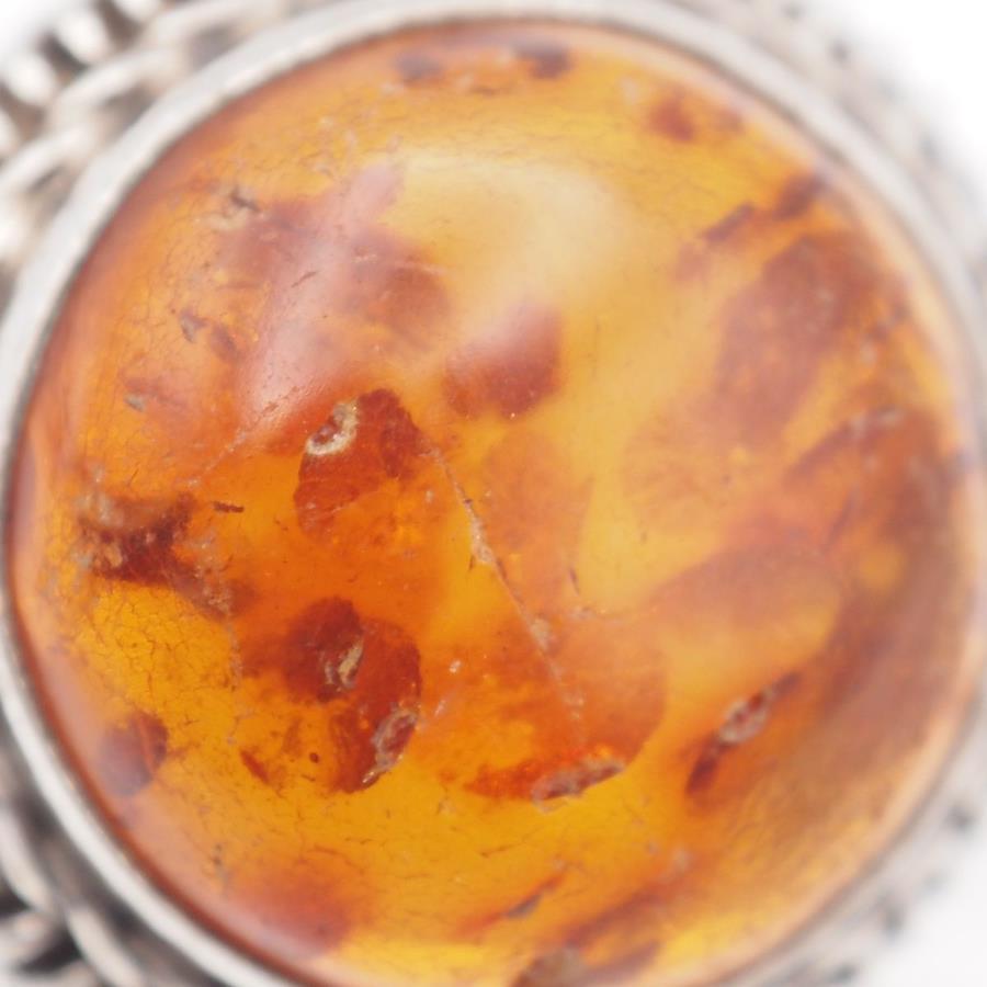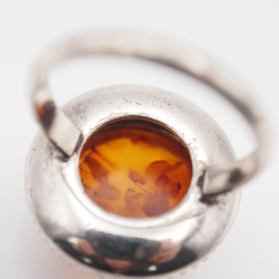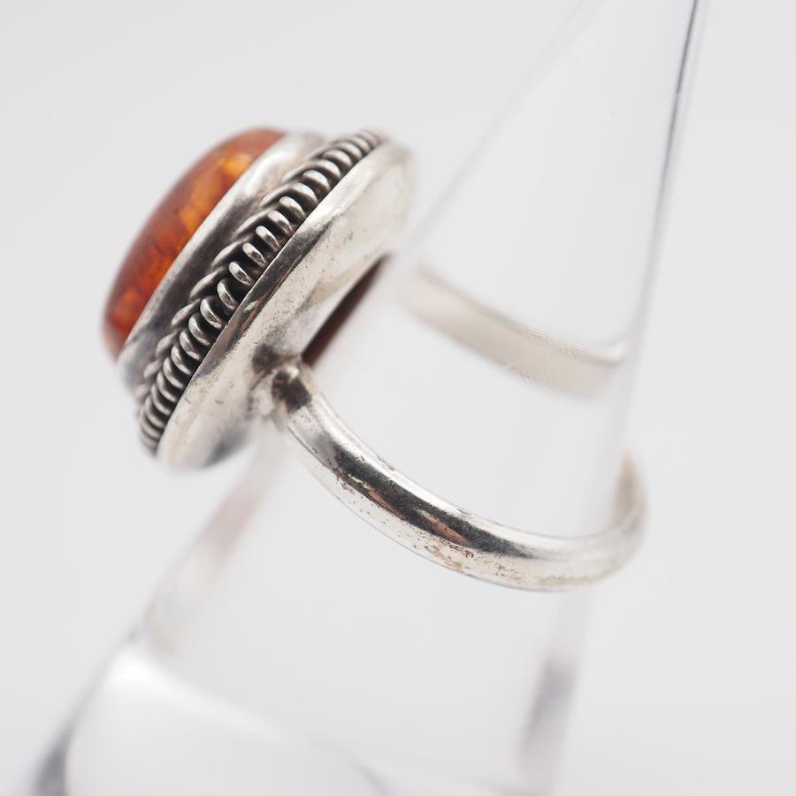 Q939 Amber Ring, Silver, Vintage Design, Size 11
