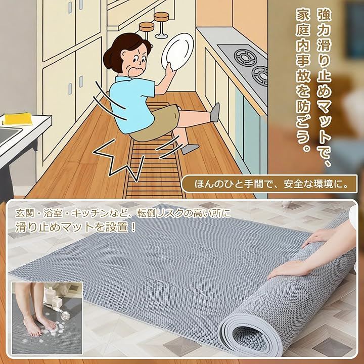 「多機能滑り止めシート|屋内・屋外兼用」 ️ 夏:雨水がサッと流れる排水性 ️ 冬:雪や氷の上でもしっかり滑り止め ペットフレンドリー:コンクリートや石の庭に敷けば、犬の足への負担軽減 玄関用:泥や砂利を効果的にブロック