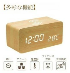 QI機能 ワイヤレス充電 iPhone アイフォン android アンドロイド 充電器 充電機能 付き LEDライト 木製置き時計。