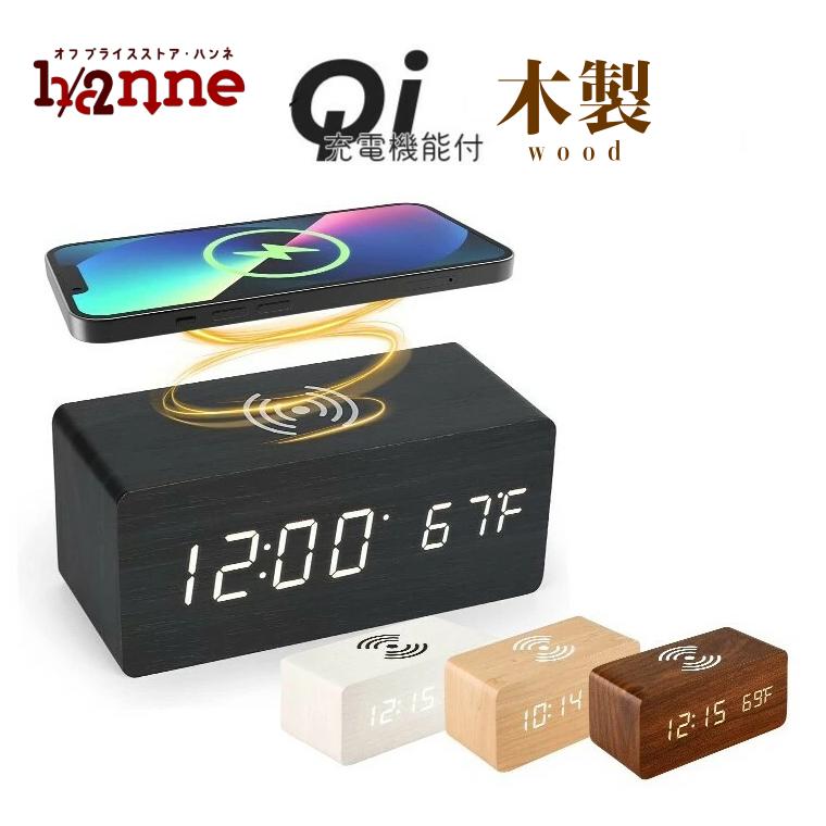 QI ワイヤレス充電 時計 置時計 目覚まし時計 デジタル LED クロック 寝室 リビング オフィス bar 飲食店 アンティーク 温度計 おしゃれ 日本語説明書付き 子供 女の子 男の子 黒 ブラック 白 ホワイト ベージュ ナチュラル 茶色 ブラウン