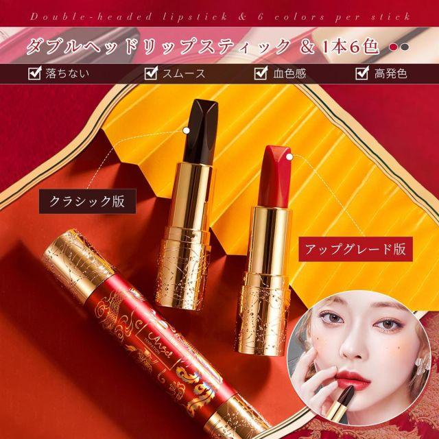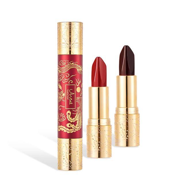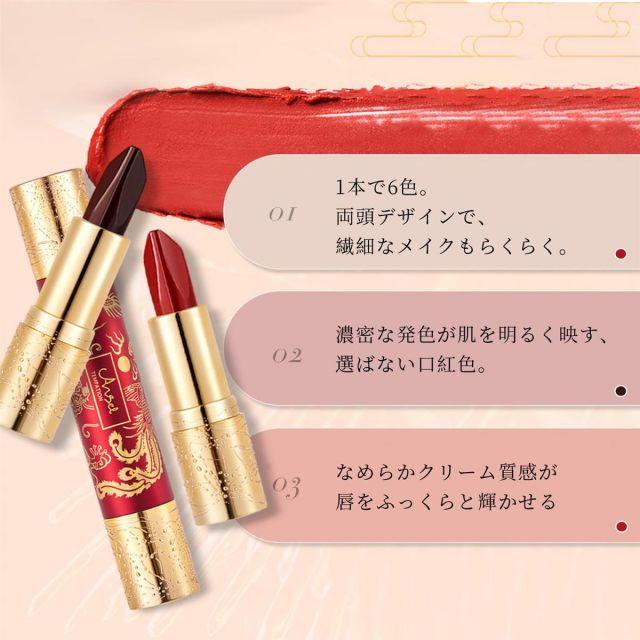 カラー:#01◆商品名:QinDerdomダブルヘッドリップスティック口紅マットリップ1本6色龍鳳の柄人気落ちない密着スムース血色感高発色防水長持ち結婚式デートギフト3.8g+3.8g