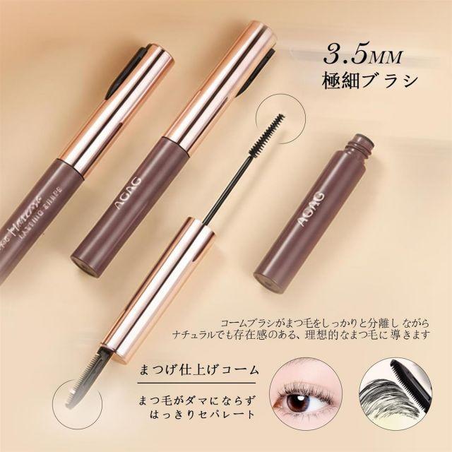 【プロ級の仕上がりを叶えられるWブラシ】3.5mm極細ブラシと仕上げコームのダブルヘッド設計が特徴のマスカラです。まずは毛束ブラシでまつ毛の根元から先までしっかりとクリームを絡め、ボリュームアップ。その後、コームブラシがからみやすいまつ毛も一本一本きれいに整え、美しいカールを持続。初心者でも簡単にプロのような仕上がりを実現します。