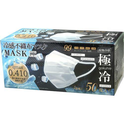 カラー:ホワイト◆商品名:Qmax0.410冷感不織布マスク極冷50枚