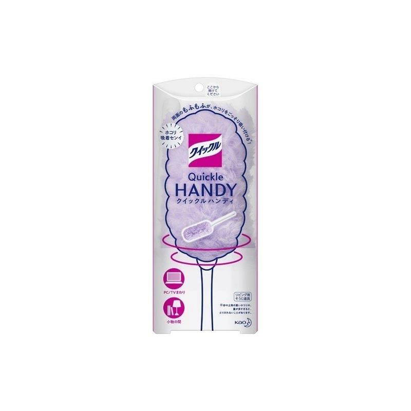 【クイックルハンディ 本体の商品詳細】●サッとなでるだけ、360度瞬間キャッチ●毛先が長くなった吸着センイが凸凹、すき間の奥のホコリ 花粉 ハウスダスト も360度でかきとり、からめとって離さない!※砂や土等の重いホコリや、量が多すぎると、とりきれないことがあります。●家中をスイスイきれいに:TVまわり、本棚、小物の間、サッシの溝などに【使用方法】・始めは汚れの少ない場所、交換前には汚れの多い場所(サッシの溝等)にお使いになると無駄なく使えます。※汚れたり、ホコリがとれにくくなったら次回からは専用の「取り替え用シート」をご利用ください。【セット詳細】グリップ*1コ、ヘッド*1コ、ハンディシート*1枚【規格概要】★材質道具(柄):グリップ:ポリプロピレン/ヘッド:ポリプロピレンハンディシート:ポリエチレン、ポリエステル、ポリプロピレンハンディシートの成分:流動パラフィンハンディシートのサイズ:約170*85mm【注意事項】・用途外に使わない。・軽くなでるようにふく。・ハンディシートは洗って使えない。・砂粒や硬いごみがハンディシートに付着した状態では使わない。(液晶画面や家具などを傷つける恐れがある。)・ハンディシートは吸水性がないので、ぬれた所には使わない。・表面がザラザラした所や、木のささくれた所には使わない。ハンディシートの繊維が抜けることがある。・車のボディには使わない。車の表面に付着した砂粒や硬いごみで傷がつく恐れがある。・電球など、高温になっている物は電源を切り、冷えた状態で使う。(高温時に使用すると、溶ける恐れがある。)・静電気でホコリがとれにくくなることがあるので、テレビなどは電源を切ってから使う。・直射日光を避け高温の所に置かない。変色や変形する恐れがある。・白木、ビニール製の床・家具などの上に長期間置いたままにしない。変色することがある。・使用する際、力を入れすぎない。道具が破損する恐れがある。・道具が入らないすき間には無理に押し込まない。ハンディシートがはずれたり道具が破損することがある。はずれる場合は輪ゴムなどでしっかり固定する。・道具(柄)が汚れたときは水ぶきし、日陰で乾かす。汚れがひどい時は、水ぶきの前に中性洗剤をうすめた液でふく。【発売元、製造元、輸入元又は販売元】花王
