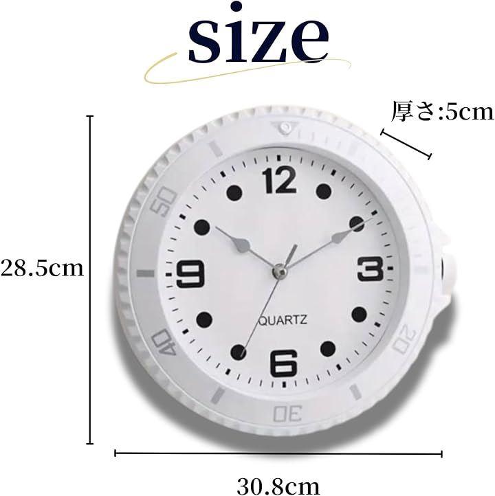 「視認性の高い28cm文字盤」直径28cmの大きめサイズで、遠くからでも時間がひと目でわかる実用的デザイン。