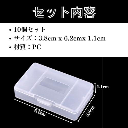 ゲームボーイアドバンスのソフトを保管できるソフトケースです。汚れやほこりから守られ、ゲームボーイアドバンスのソフトを整理したり、持ち運びも簡単になります。 半透明でタイトル部分が見やすいため、中のソフトを一目で確認できます。探す手間が省け、簡単に取り出すことができます。また、ゲームソフトの端子部分にホコリがつくのを防ぎ、ゲームを起動する際の読み込み不良を防止できます。 コンパクトで持ち運びが便利: コンパクトなサイズで、ポケットやバッグに簡単に収納できます。ビーズやネイルパーツなどの小さな部品を整理するための小分け箱や小物入れとしても便利です。 大容量の10点セットや20点セットがあり、お手持ちのカセット数に合わせてお選びいただけます。紛失または破損したケースの交換に最適です。 セット内容:10個セット サイズ:3.8cm x 6.2cmx 1.1cm 材質:PC