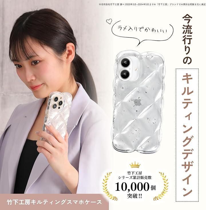 「キルティングデザイン」 うねうねとしたエッジとダイヤ柄のひし形凸凹加工、アルミ箔シルバーの装飾を施した、大人可愛いiPhone用クリアケースです。