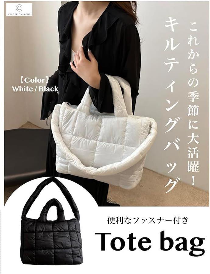 これからの季節に大活躍。キルティングファスナー付きトートバッグ