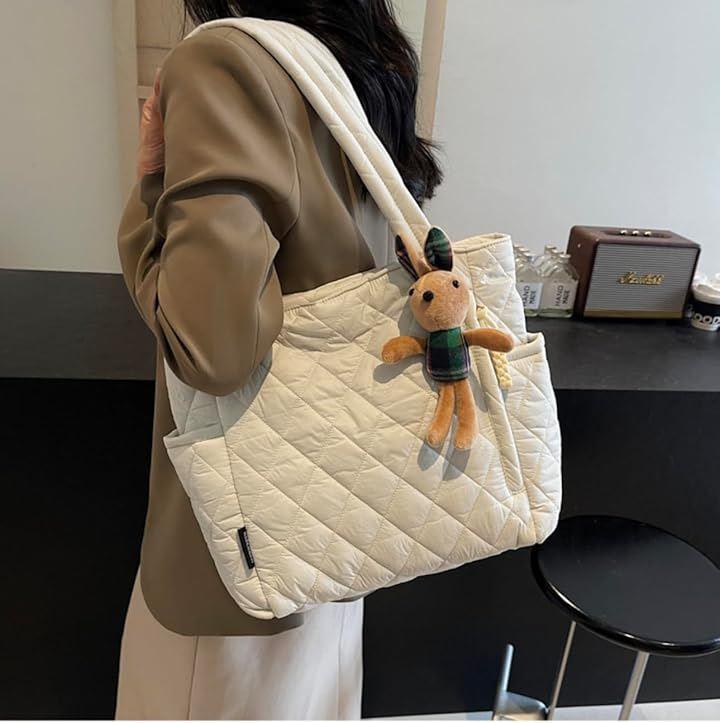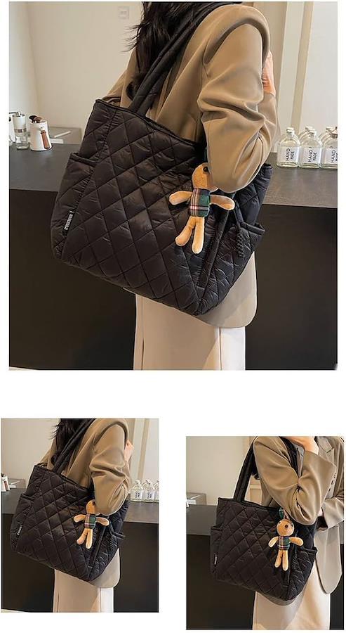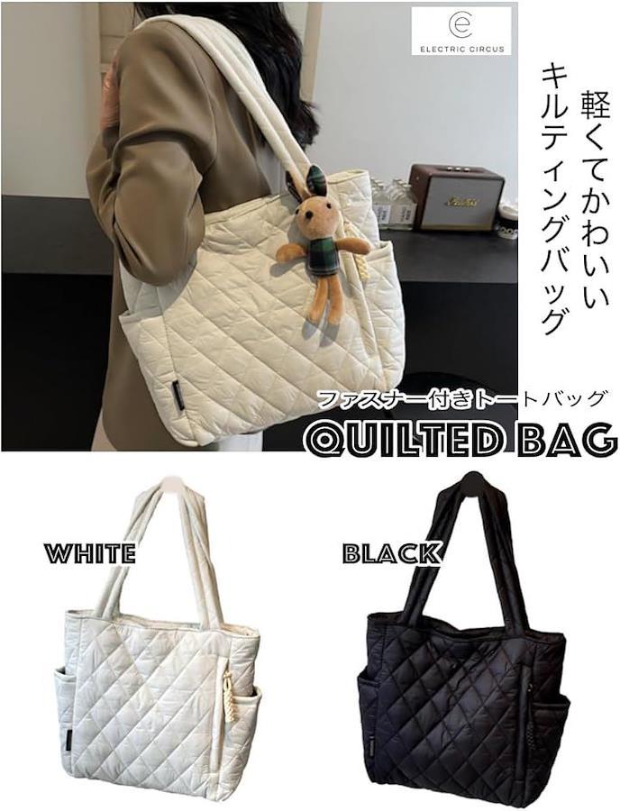 大きな開き口、中身が見やすい軽くてかわいいキルティングバッグ