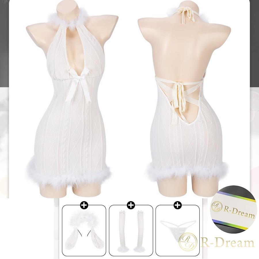 ネックスタイル ハイネック知る人ぞ知る「童貞を殺す服」好きな方にオススメ。胸元が大胆オープンになったニットワンピース。ミニタイトワンピースに、羊耳カチューシャ、アームカバー(×2)、Tショーツもついた、コスプレのフルセットです。胸元の谷間とミニ丈で美脚をチラ見せでセクシー度アップ! たれ耳が萌え要素をプラス! タイトでボディにぴたっとフィット。女性らしい体のラインも誘惑ポイントです。後ろ姿も背中が大胆露出。360度視線を釘付けにします。もこもこふわふわな飾りがあしらわれ、癒し効果もバツグン。心も体も暖かくなりたい秋冬にぴったり。クリスマスを過ごすアイテムとしてもいいですね。【セット内容】ワンピース、カチューシャ、アームカバー(×2)、Tショーツ 【カラー】ホワイト 【サイズ】フリーサイズ ※S-XL相当 【素材】ポリエステル99%(#lf)(#lf)(#lf)商品購入前に、ストア紹介ページをご確認ください。