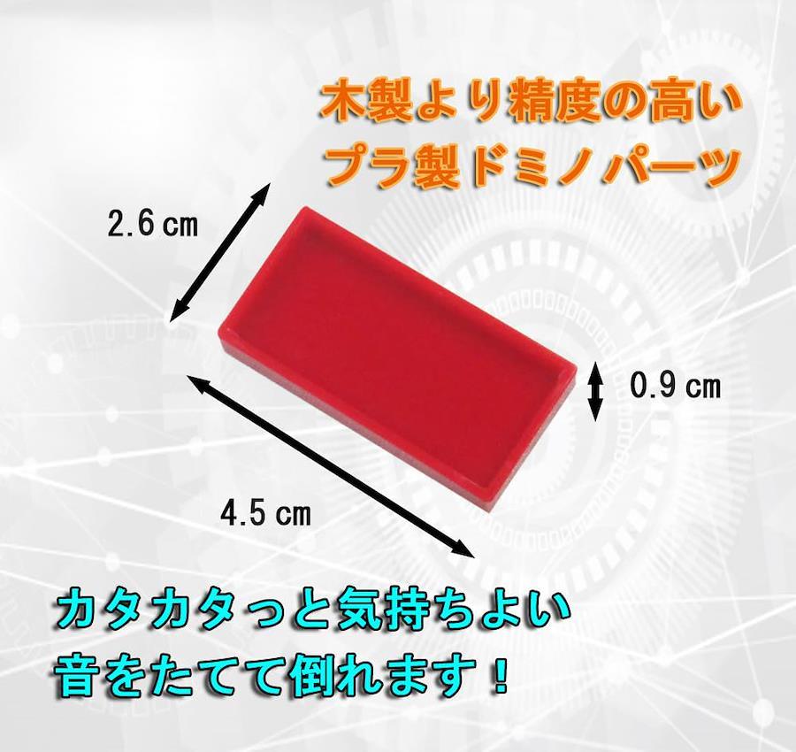 遊びながらに 発想力 や 集中力 を 高め 大人も楽しい カラフル プラ製ドミノ 倒し セット となります。 遊びながらに 発想力 や 集中力 を 高め 大人も楽しい カラフル プラ製ドミノ 倒し セット となります。 教材 にも使われていることから、手先の器用さや、配列やギミックを考えることで自分で考える力など、知能向上が期待できます。ピタゴラスイッチ 的 ピタゴラ装置も作れます。 木製ドミノは精度が悪く立てづらいとか、倒れたときの音が小さくて爽快感がないとの話もあります。当方はプラ製で精度も高く、カタカタといい音立てて倒れます(ギミックは一部木製です)。ドミノ1個のサイズ 約45mm×26mm×9mm(2024年モデルからサイズが変わりました、それ以前のモデルとサイズが違いますのでご注意ください) ギミック入りセット:約450個ドミノ+32個のギミック 追加ドミノのみ:約110個のドミノ