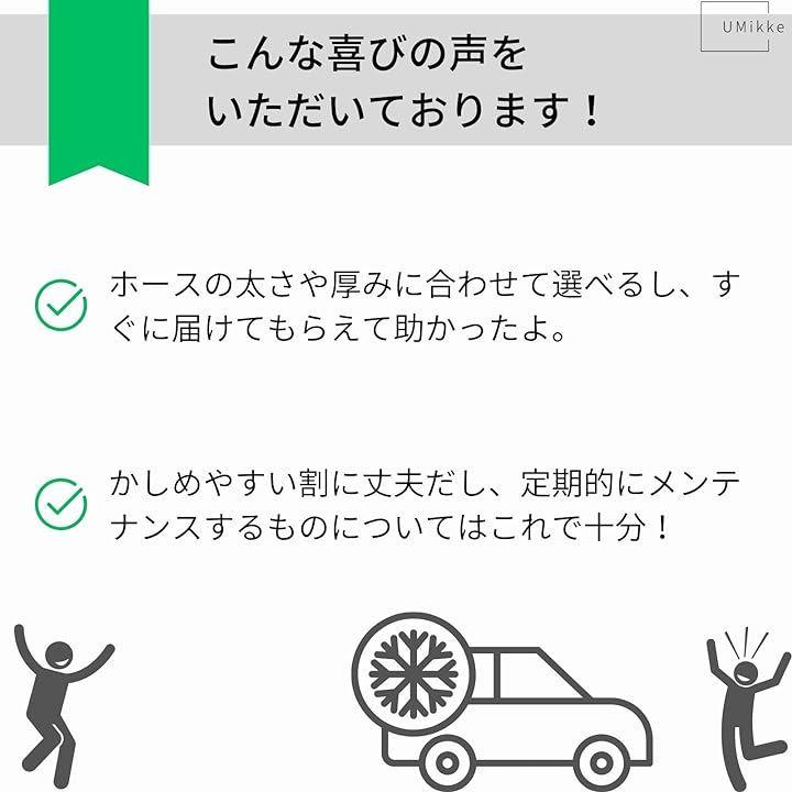 様々なホースの太さや厚みに対応できるよう、厚めのホース向け4種と、薄めのホース向け4種、合わせて8種あります。