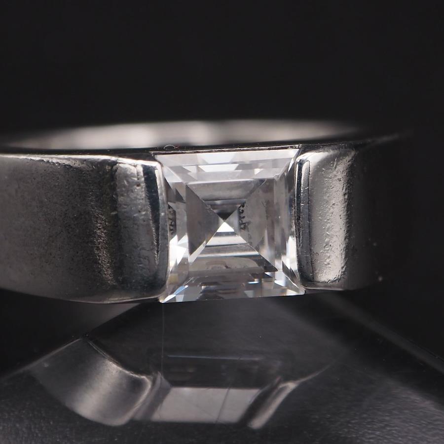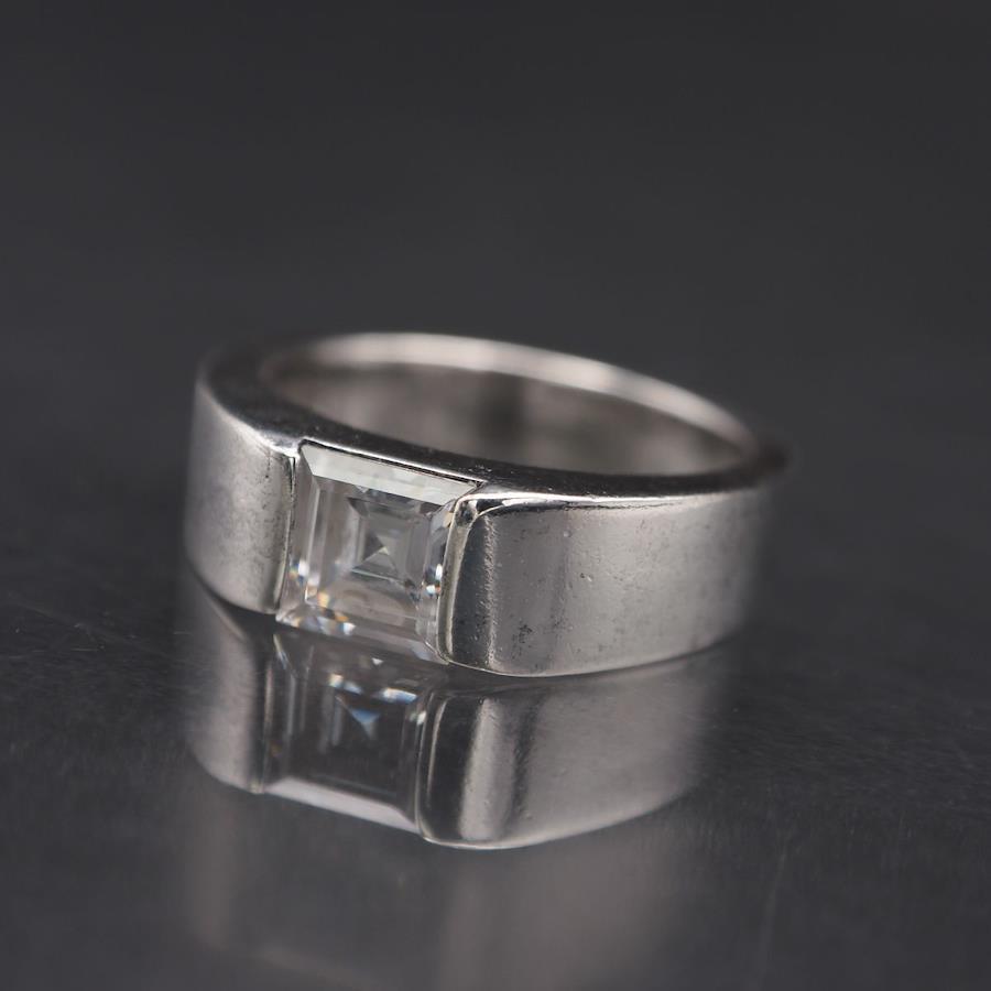 R988 Diamond-like Silver Stamped Ring, Silver Ring, Size 13