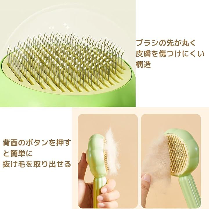「抜け毛を捨てやすい」背面のプッシュボタンで抜け毛を浮かせることができて捨てやすいです。
