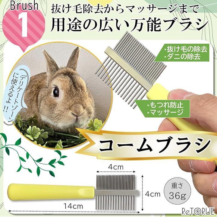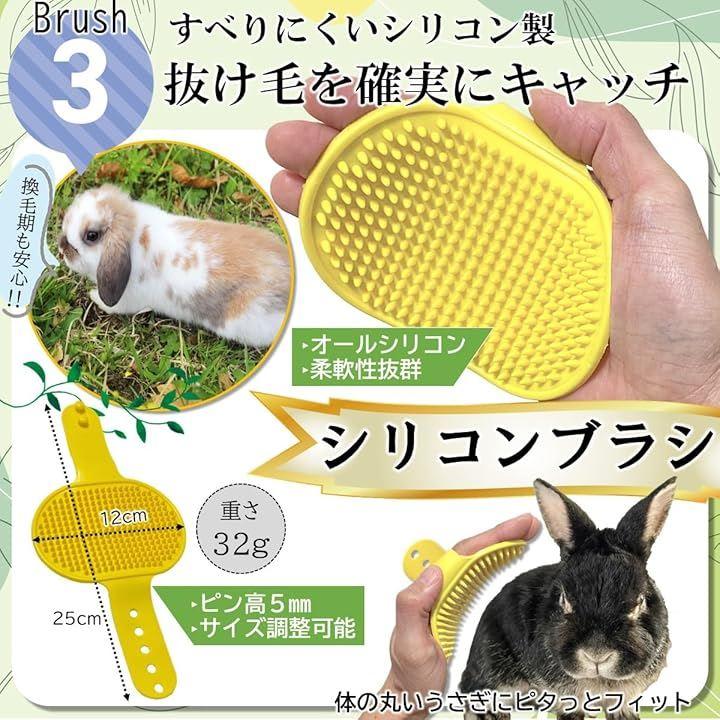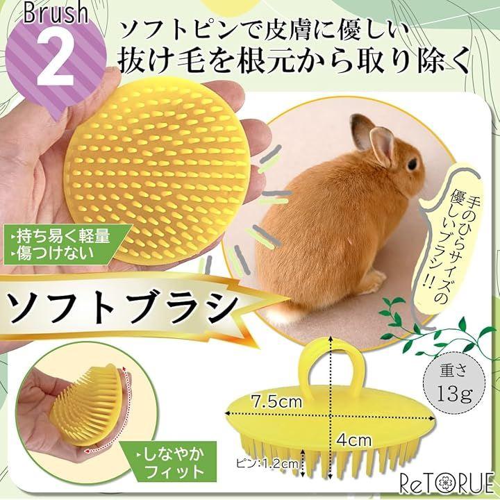 デリケートなうさぎの皮膚に配慮し、やさしくしっかりとお手入れできる3種のブラシが揃ったセットです。