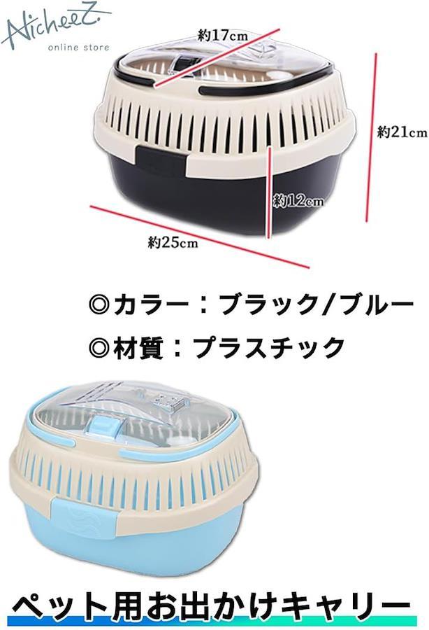 「商品内容」 ペット用お出かけキャリー 材質:プラスチック カラー:ブラック/ブルー サイズ:横/約25cm 縦/約21cm 高さ/約17cm *低価格での販売実現のため、簡易梱包にて商品お届けの場合がございます。