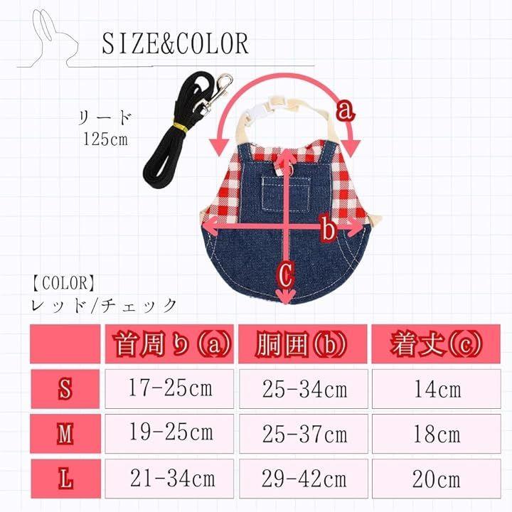 「商品内容」本体サイズ(L):首周り21-34cm、胴囲29-42cm、着丈20cm 主な材質:コットン, デニム 付属リードの長さ125cm *サイズ詳細は商品画像をご確認ください。
