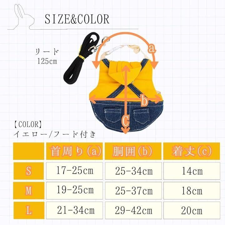 「商品内容」本体サイズ(S):首周り17-25cm、胴囲25-34cm、着丈14cm 主な材質:コットン, デニム 付属リードの長さ125cm *サイズ詳細は商品画像をご確認ください。