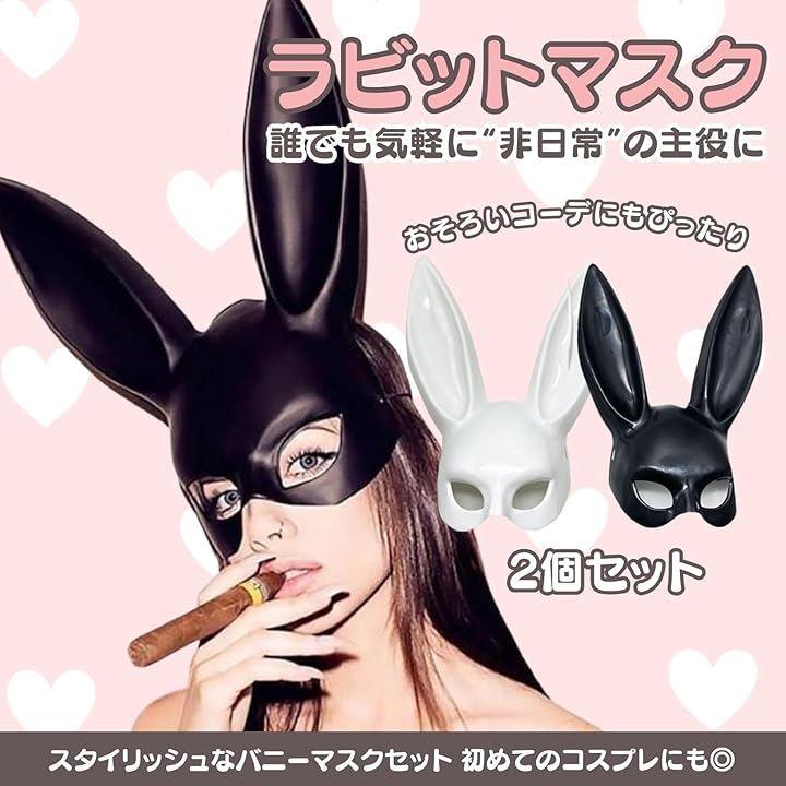 「セット内容・仕様」 内容:ラビット仮面2点セット(ブラック・ホワイト)/素材:軽量プラスチック製で丈夫・再利用可能/仕様:ゴム紐付き、簡単調整可/注意:モニター環境により色味が若干異なる場合がございます。