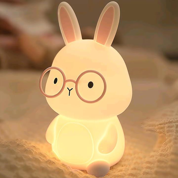 「かわいいバニーナイトライト」かわいいウサギのメガネは、魅力と機能性を融合させています. コンパクトなサイズと柔らかいシリコンデザインにより、ベッドサイドのお供や寝室、寮、デスクの装飾に最適です。