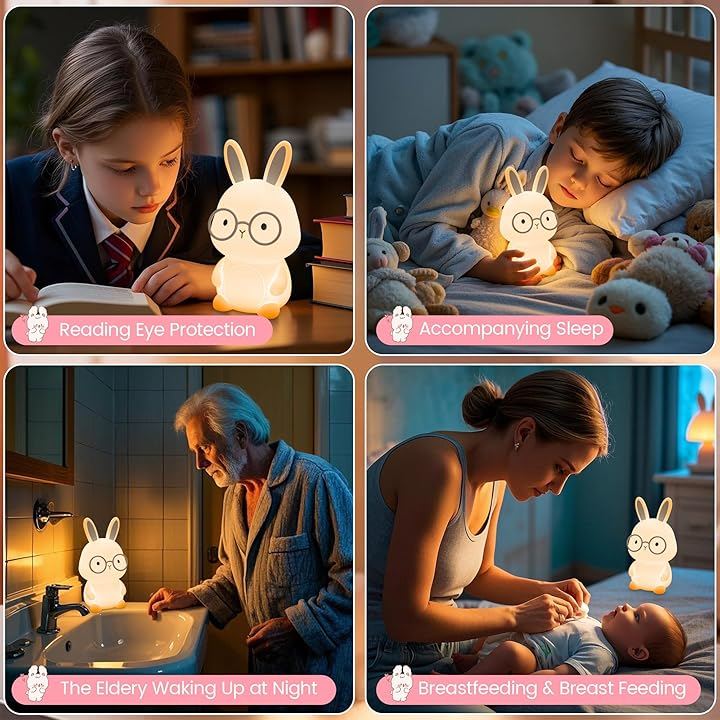 「目に優しいライト&長いバッテリー」この充電式バニーナイトライトは、3000K~3500Kの暖かく快適な輝きが特徴で、夜間の使用に最適です。