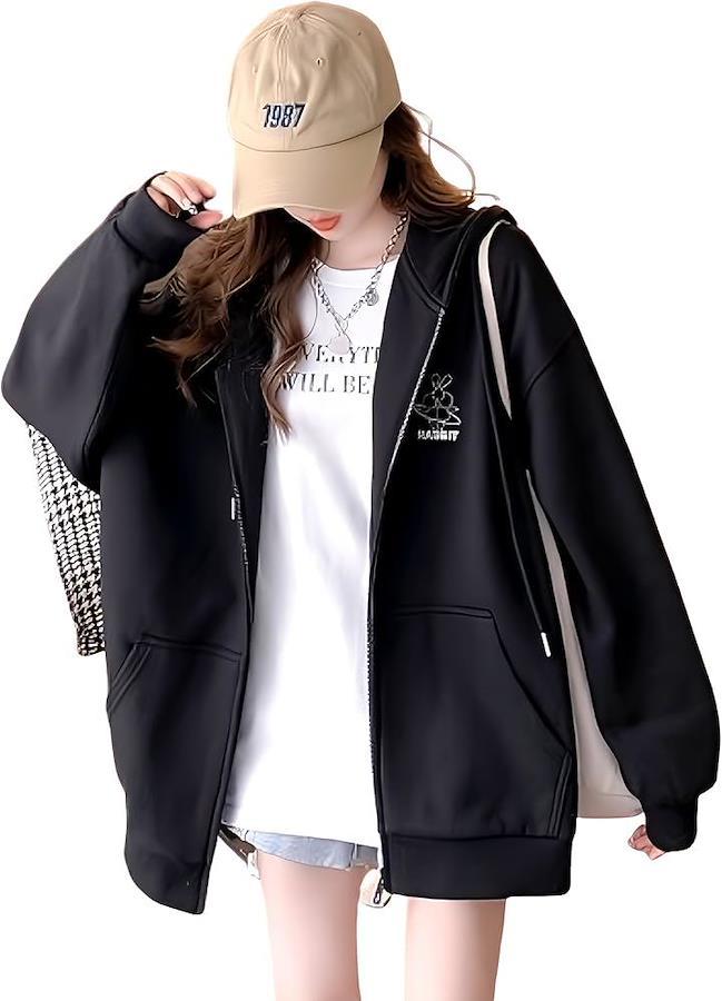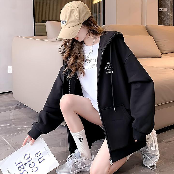 「ラビットロゴが可愛いレディースジップアップパーカー」胸元に施されたラビットの刺繍がさりげないアクセントに。